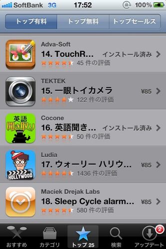特に深い意味は無いのですが、App StoreのTOP100の中に、自分が紹介したアプリは、どれだけ入っているのか?企画第一弾!今日は有料アプリ編です。ランキング1位から順に辿っていって、紹介したことの有るアプリと順位を発表します。ランキングは、2011/12/2…